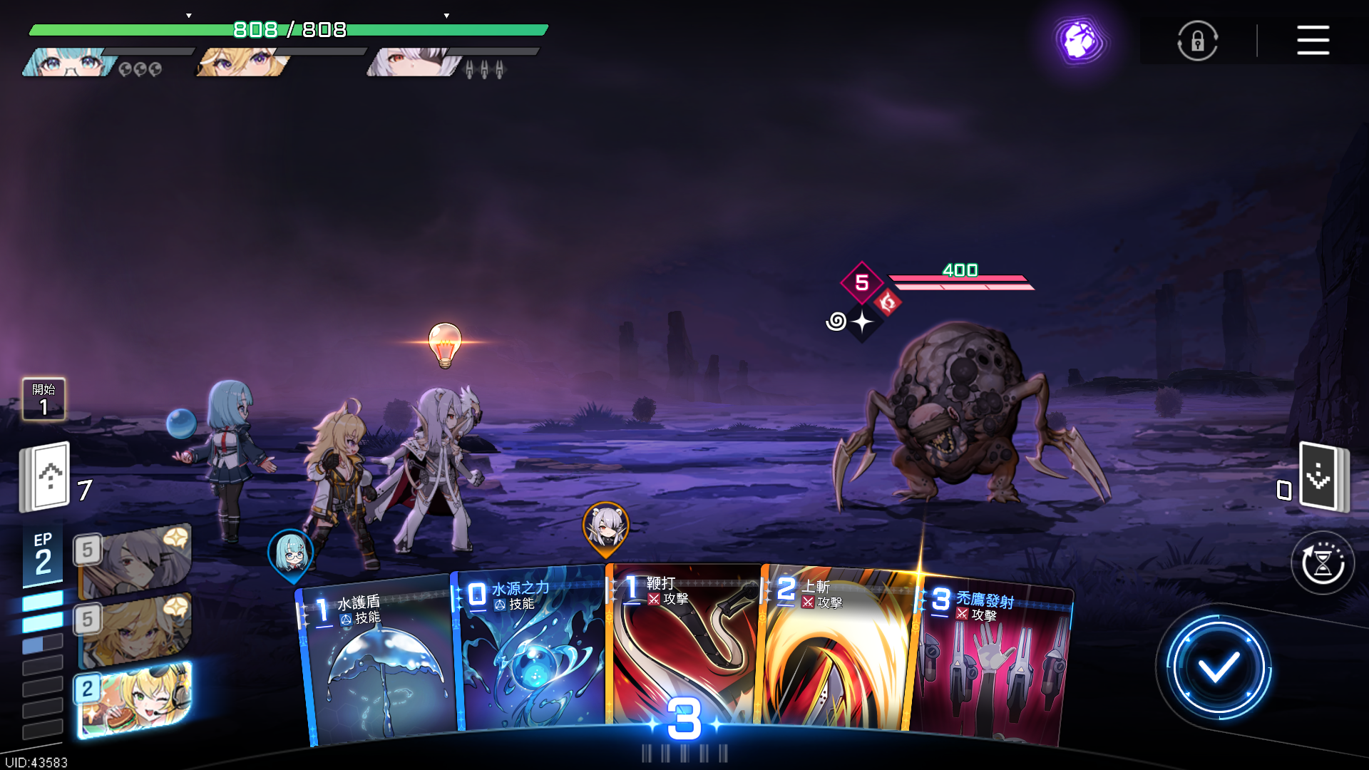 点燃直觉触发的“灵光一闪”能够为卡牌附加上一些特别的词条,比如“1回合内士气增加1点”、“行动次数增加2次”、“此卡牌费用减少1点”、“敌方行动回合增加1次”等,当玩家们打出这张被增强的牌时,附在上面的额外效果就会即刻触发,为玩家们带来具体的收益。由于点燃直觉的“灵光一闪”效果是不固定的,所以获得的收益也会有所区别,玩家们可以根据局内的形式来决定是否需要出牌。此外,所有的“灵光一闪”效果在手牌数量最大的时候都无法触发,所以大家一定要记得在手牌格中留出至少一个空位哦~